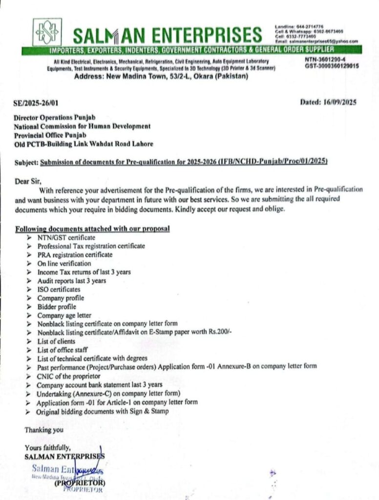 Salman Enterprises is a leading importer, exporter, indenters, and government contractor dedicated to providing high-quality equipment and solutions. We specialize in a wide range of products including test instruments, security equipment, and advanced 3D technology such as 3D printers and 3D scanners. As a trusted general order supplier, we are committed to delivering innovative and reliable products to meet the diverse needs of our clients. With a focus on excellence and customer satisfaction, Salman Enterprises strives to be your preferred partner in technology and equipment solutions.